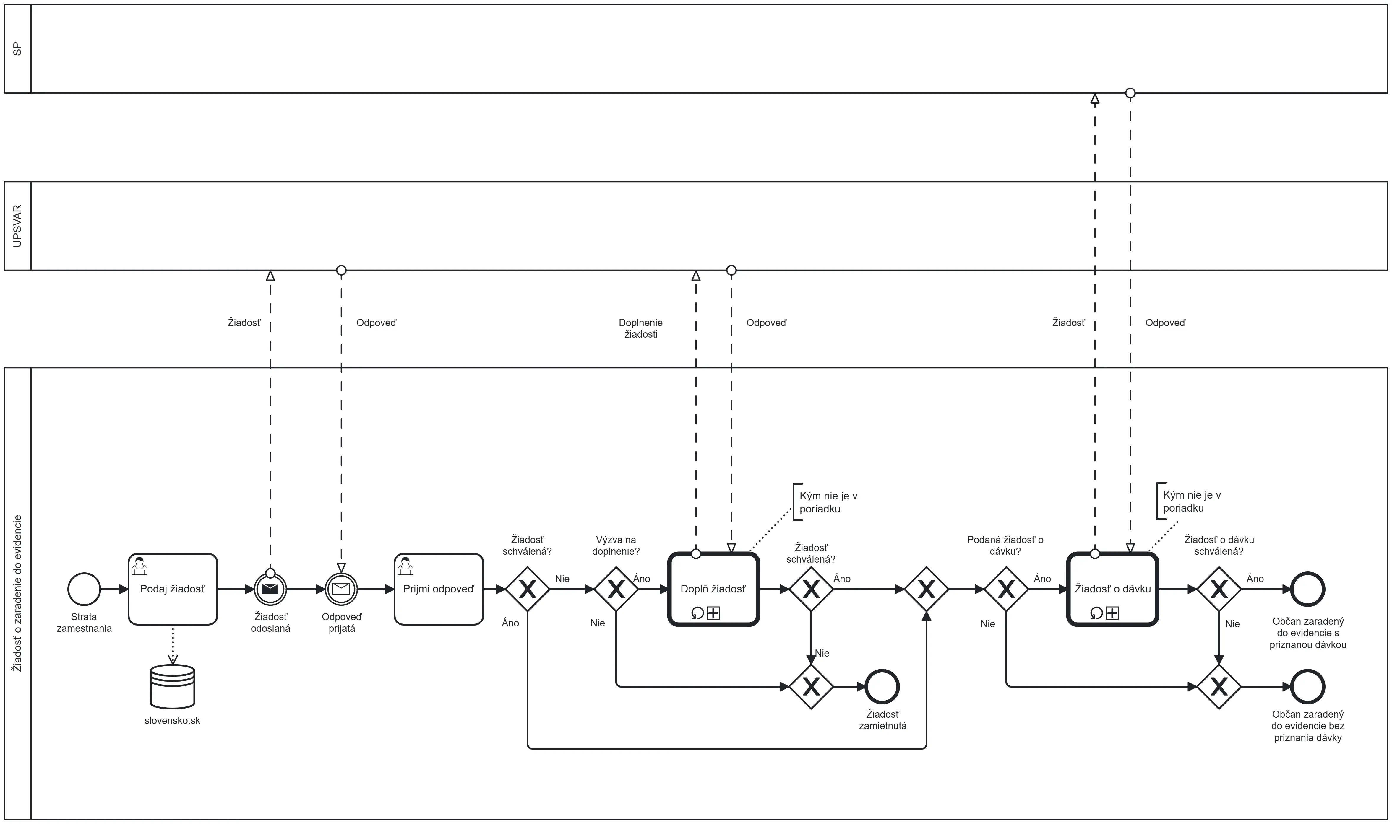 UPSVaR a SP si riešia svoju časť sami (majú svoj vlastný systém), ale Camunda ich „naštartuje“ a potom čaká, kým odpovedia.